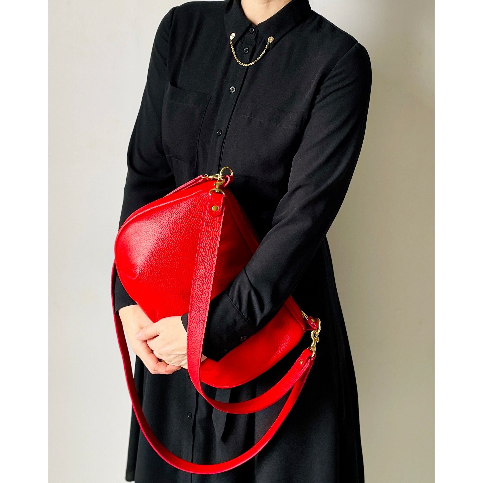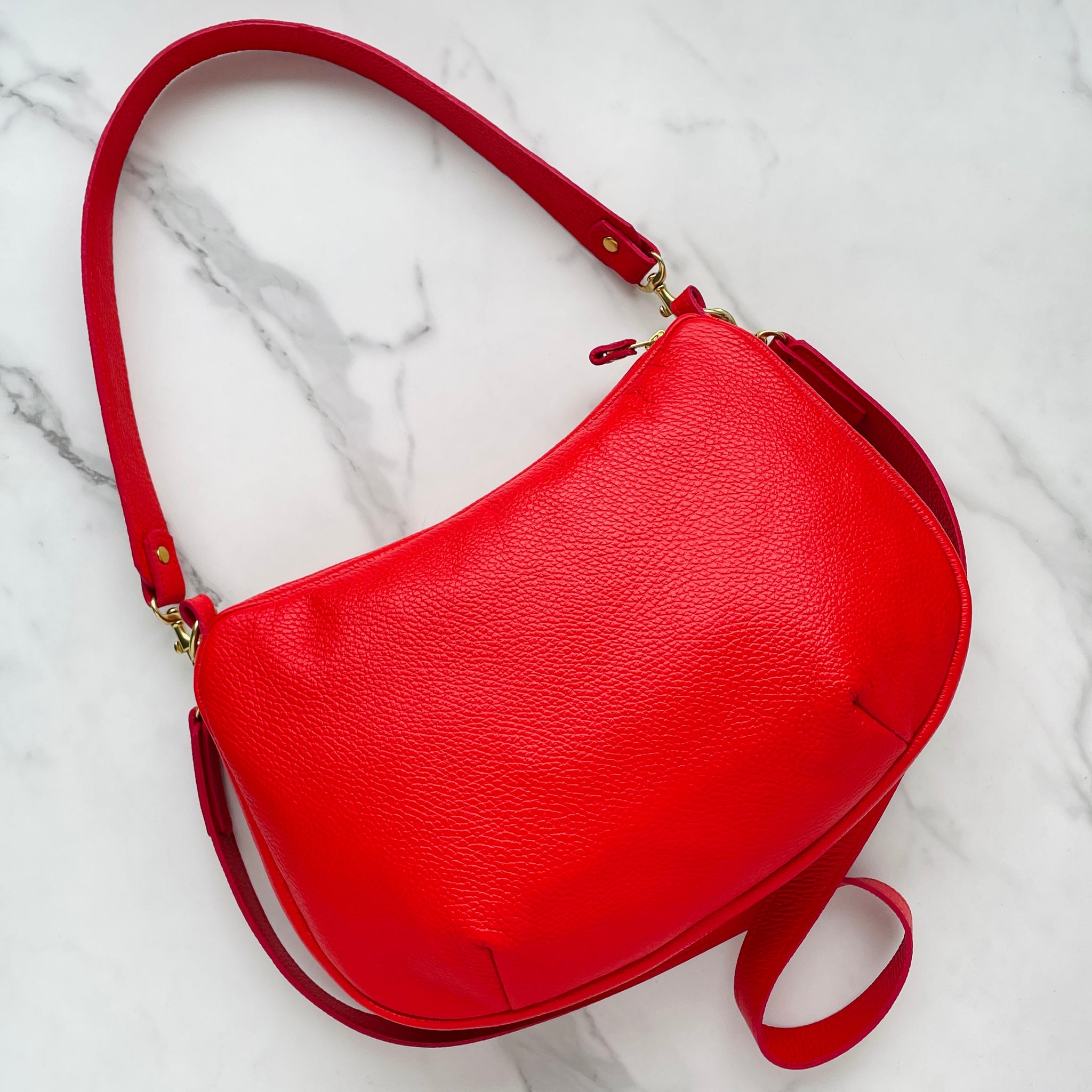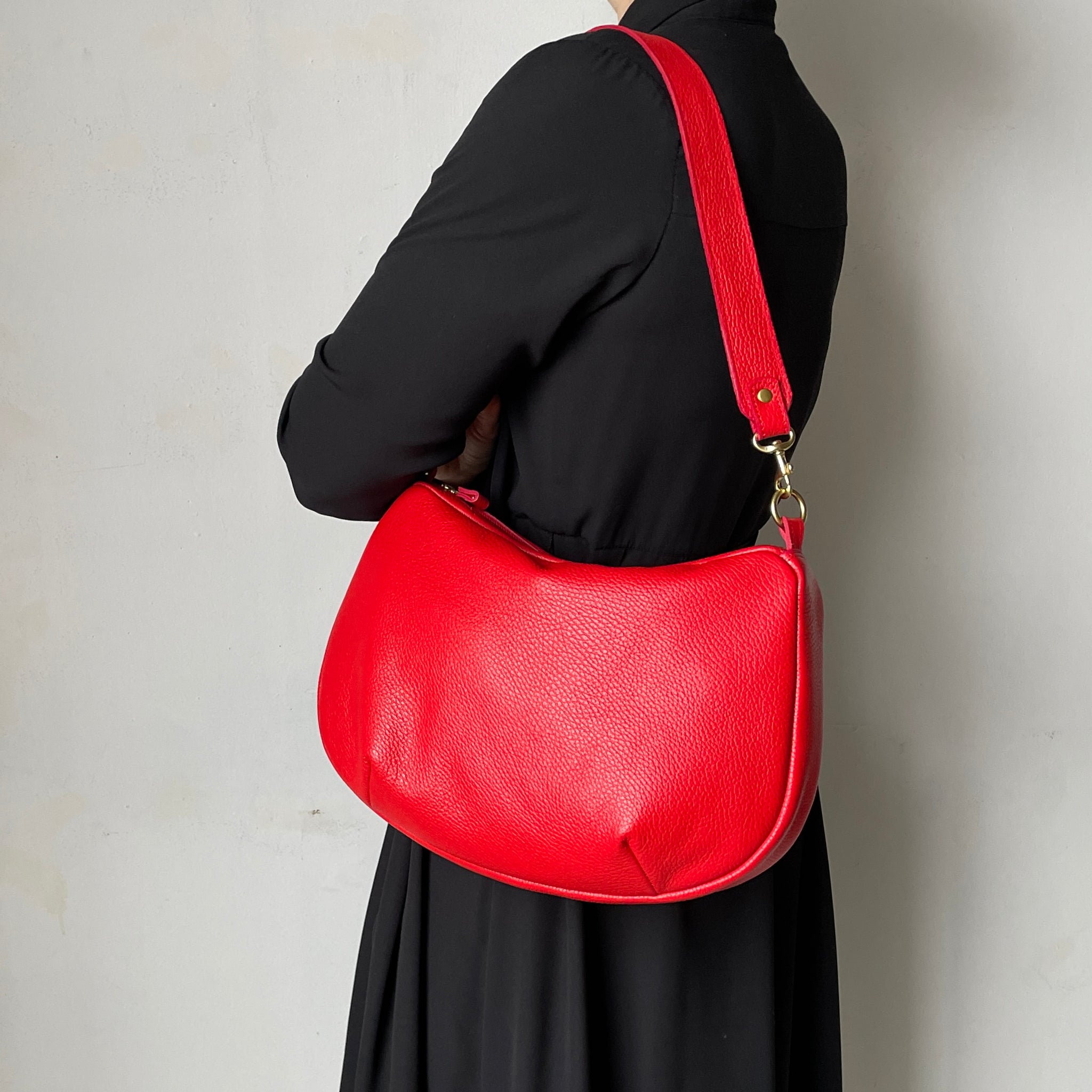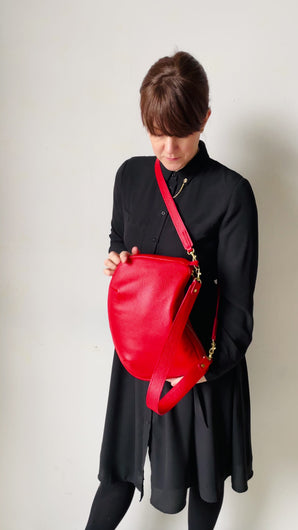 Embrace your inner Brigitte Bardot with these striking colors. The Passage Bag is a chic, crescent-shaped accessory featuring a secure zip closure, spacious enough to hold your iPad, water bottle, wallet, snacks, and keys. Inside, you’ll find a zipper pocket for enhanced organization.